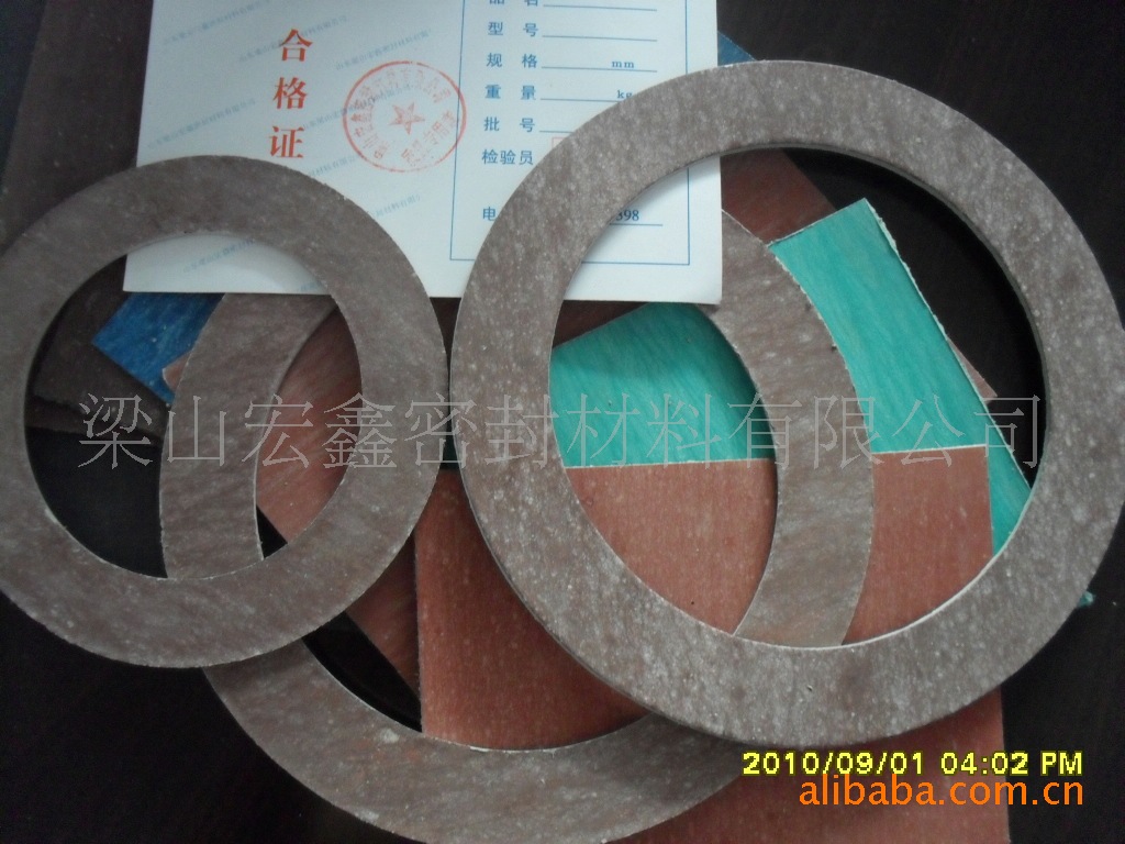 非石棉垫片(无石棉垫片)是以芳纶等有机纤维和植物纤维与丁腈橡胶、无机矿物质在高温下压延而成的密封材料,由于含石棉纤维很少,适用为石棉垫片的无石棉垫片的替代产品。非石棉垫片(无石棉垫片)既具有较高的强度,又具有较好的回弹性,同时具有超强的抗渗透性能是在高温高压下取代石棉垫片的良好环保材料。
